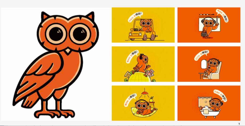 Having found the prototype symbol, our designers set about 'privatising' it and creating a Super Sign that would be exclusive to the brand. Firstly, the head of the owl was enlarged and the eyes were highlighted. Because the big eyes have a communicative power and are staring at you, people can spot them at a glance, and the visual impact is strong and stimulating enough to be memorable. Secondly, the feathers on the owl's body were removed and simplified, and the colour was changed to orange for a brighter and more penetrating colour. Thus, the Super Sign - the big-eyed orange owl - was born!